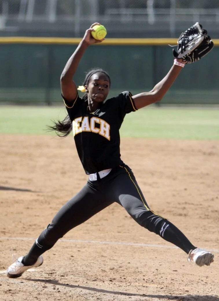 In her junior year of high school, the year before she would pitch her first perfect game, Erin signed her letter of intent to attend California State University, Long Beach on a full-ride scholarship for the NCAA DI softball team. Her mother and father met at CSULB when her dad was a shortstop on the Long Beach State NCAA DI Baseball team in the early 80s, so she carried on the tradition. In four years at Long Beach State Erin threw three no-hitters and become the LBSU career pitching leader in strikeouts, wins, and appearances, statistics she still holds today.